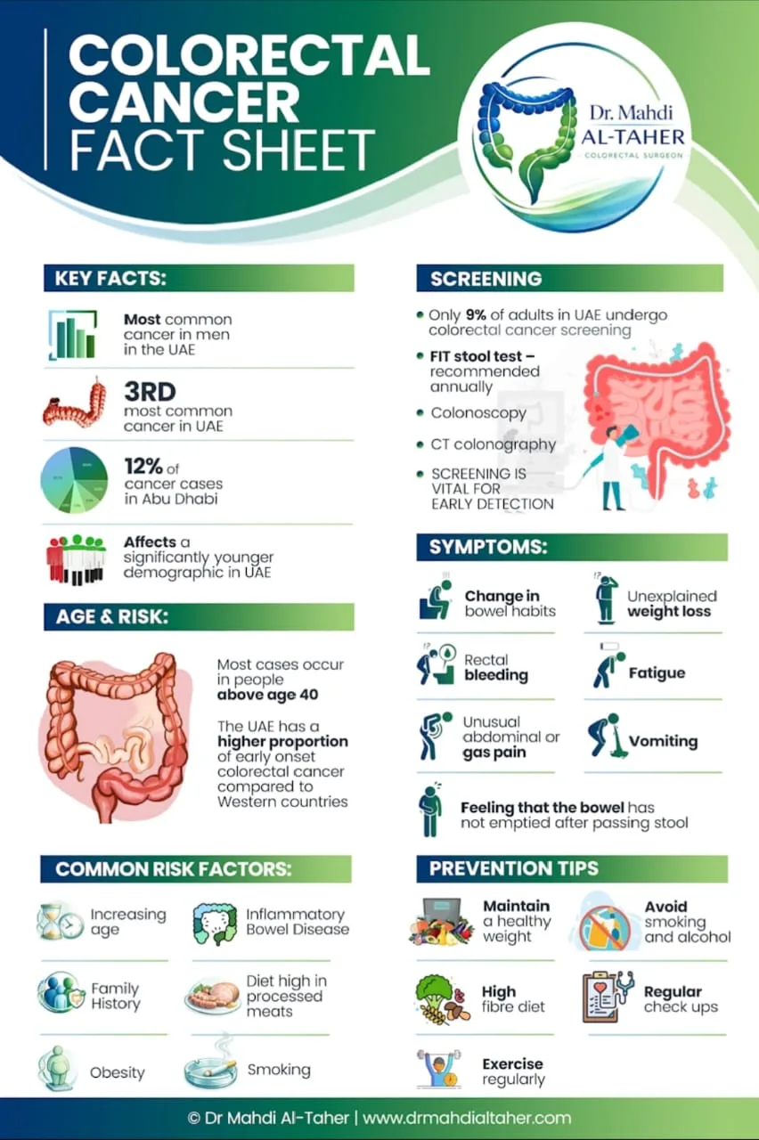 Dr Mahdi Al-Taher provides a collection of professionally designed patient information leaflets covering colorectal conditions, screening, and prevention.